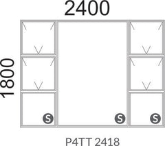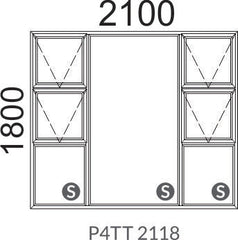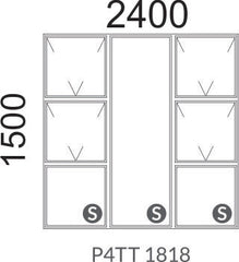*Maximum sash size: width 600mm height 600mm. All dimensions indicated are normal opening sizes. Deduct 10mm for actual overall window size. Windows 1800mm and wider get 900mm vents.P4TT windows get 600mm wide events